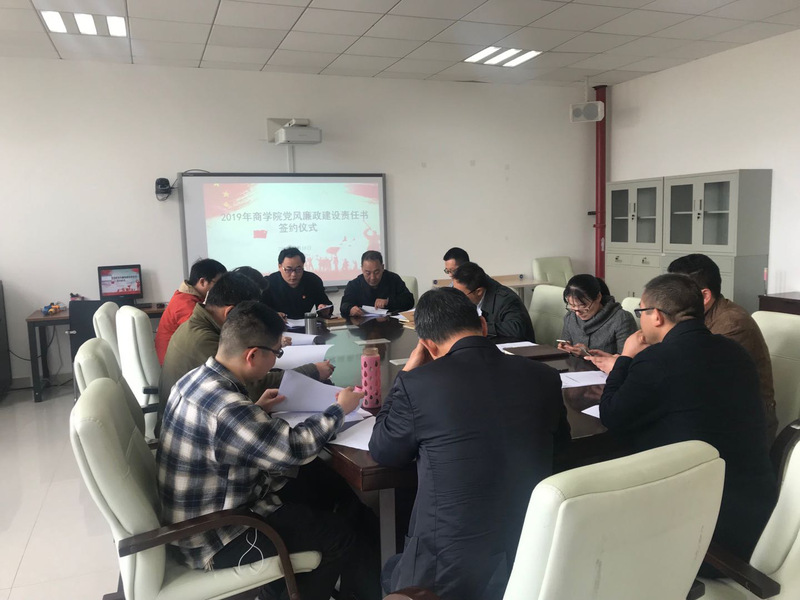 4月16日上午,欧冠投注官网入口2019年党风廉政建设责任书签约仪式在商院楼512会议室举行,全体党政领导班子成员、三级机构负责人及各教研室主任参加了会议。