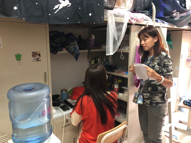 为深入了解关心新生们进入大学后的身心状态,提高广大新生的安全意识,督促他们养成良好的作息习惯,9月4日下午,欧冠投注官网入口党总支副书记兼副院长陈秀春与各新生辅导员走访了新生寝室。