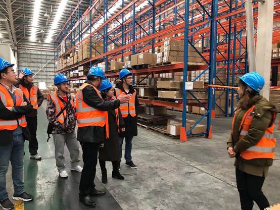 云丰国际物流(上海)有限公司经理刘艺热情接待了调研团,并带领大家实地走访了物流基地,了解了货物仓储、装卸、搬运、运输等流程。