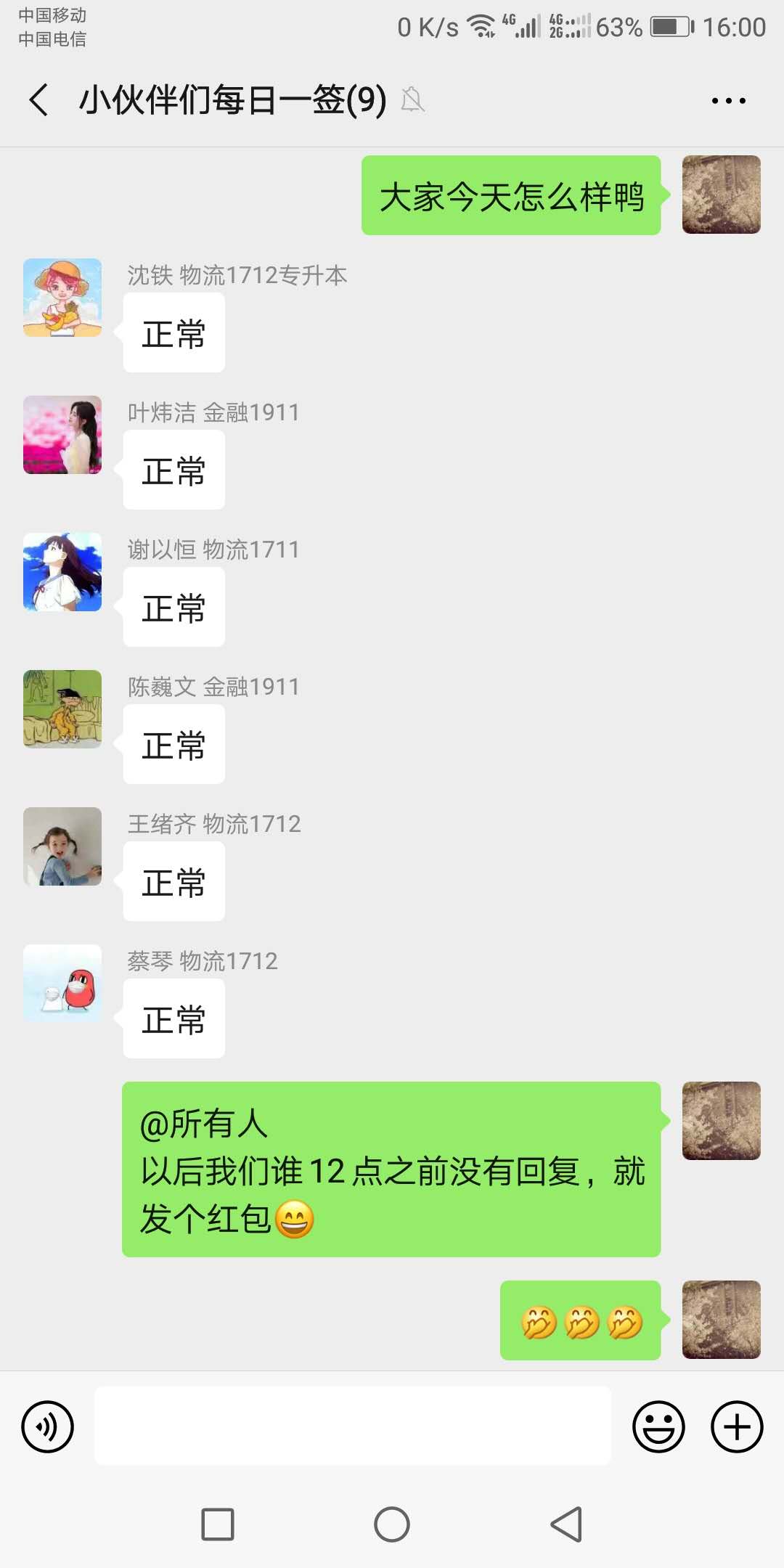 自疫情爆发以来,欧冠投注官网入口共有11名学生一直住校至今。辅导员李畅作为欧冠投注官网入口负责园区工作的老师,按照要求,认真贯彻落实校、院党委关于积极预防,严格管控的规定,把关心、管理寒假留宿在学校的学生作为日常工作中的重中之重:每日向留宿学生询问体温、身体状况,确保掌握每一个人每一天的情况及其变化;主动了解学生的生活和学习情况,利用QQ群、微信做到每天都有交流,和每个学生都有交流,并定期向学院陈秀春老师汇报,近两个月来,24小时不关机,早上第一件事问学生体温,晚上点名问情况,已成为她的生活“习惯”。每天看着QQ群,微信里的每一个学生体温正常,身体状况良好动态情况,心里的“大石头”也能落地了。目前,在学院党政高度重视和关怀下,留宿的11名同学,身心健康情况良好,学习井然有序,新学期的学习任务正有条不紊的展开。