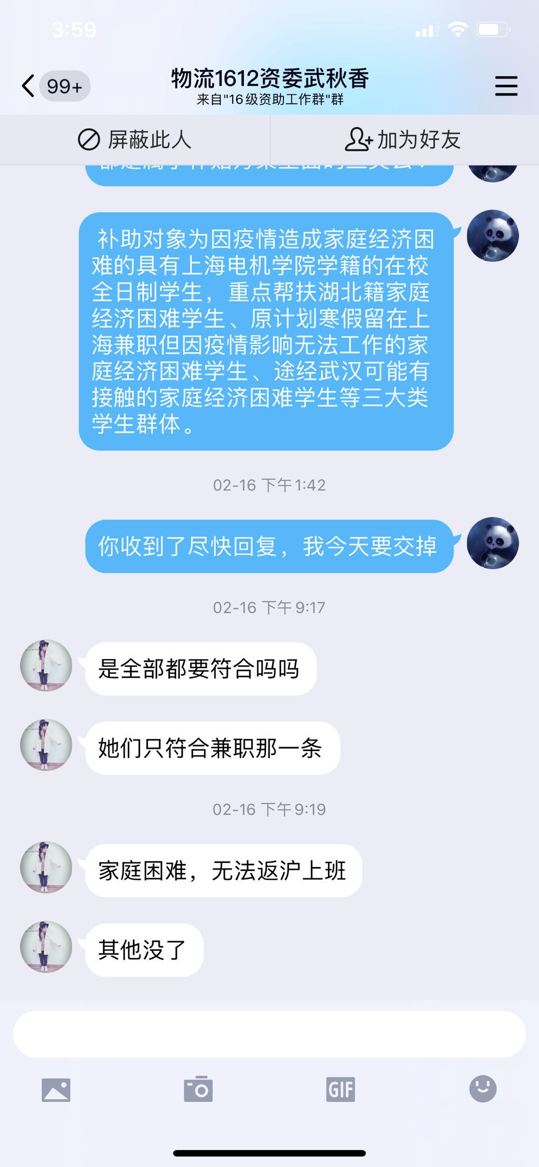 作为学院负责资助工作的辅导员张鹂,在疫情期间,坚持居家办公。并在疫情爆发最严重的时期,及时排摸欧冠投注官网入口2800多名学生中因受疫情影响需要资助、需要帮助的同学。在了解每一位学生的状况之后,及时上报并发放困难补助,帮助每一位学生,每一个家庭渡过这次难关。资助工作在疫情期间是一项丝毫不能松懈的任务,只有精准的掌握每一位同学的生活情况,才能将资助工作做的更加细致,更加彻底。在做好各项资助工作的同时,她不忘积极宣传国家政策,挖掘资助育人成果也是必不可少的。在受资助的同学中,不乏有很多积极向上,并为这次防疫工作尽自己的一份力的同学。主动挖掘,积极宣传,把榜样的力量扩散到每一位同学的思想中,也是资助育人的关键。让我们共同努力,战胜疫情!