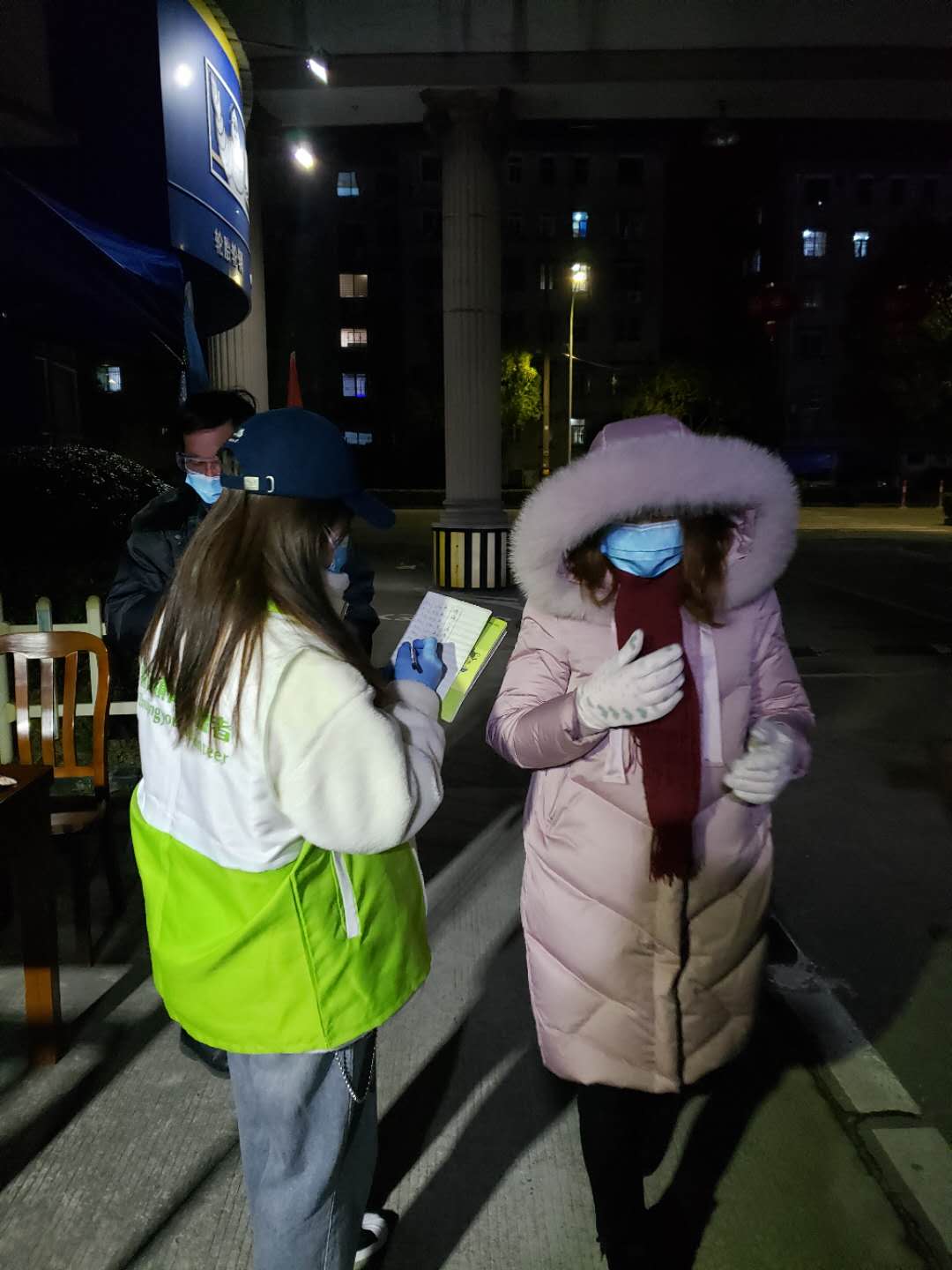 在这个春节期间略显冷清的夜晚,她遇到过行人的不理解,也体会到了任务的繁重。但看到了随着大家重视程度的提高,大家越来越理解并配合工作,她打心底里感到幸福。