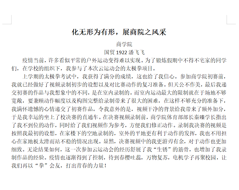 国贸1922潘飞飞(校决赛女子太极拳第一名)