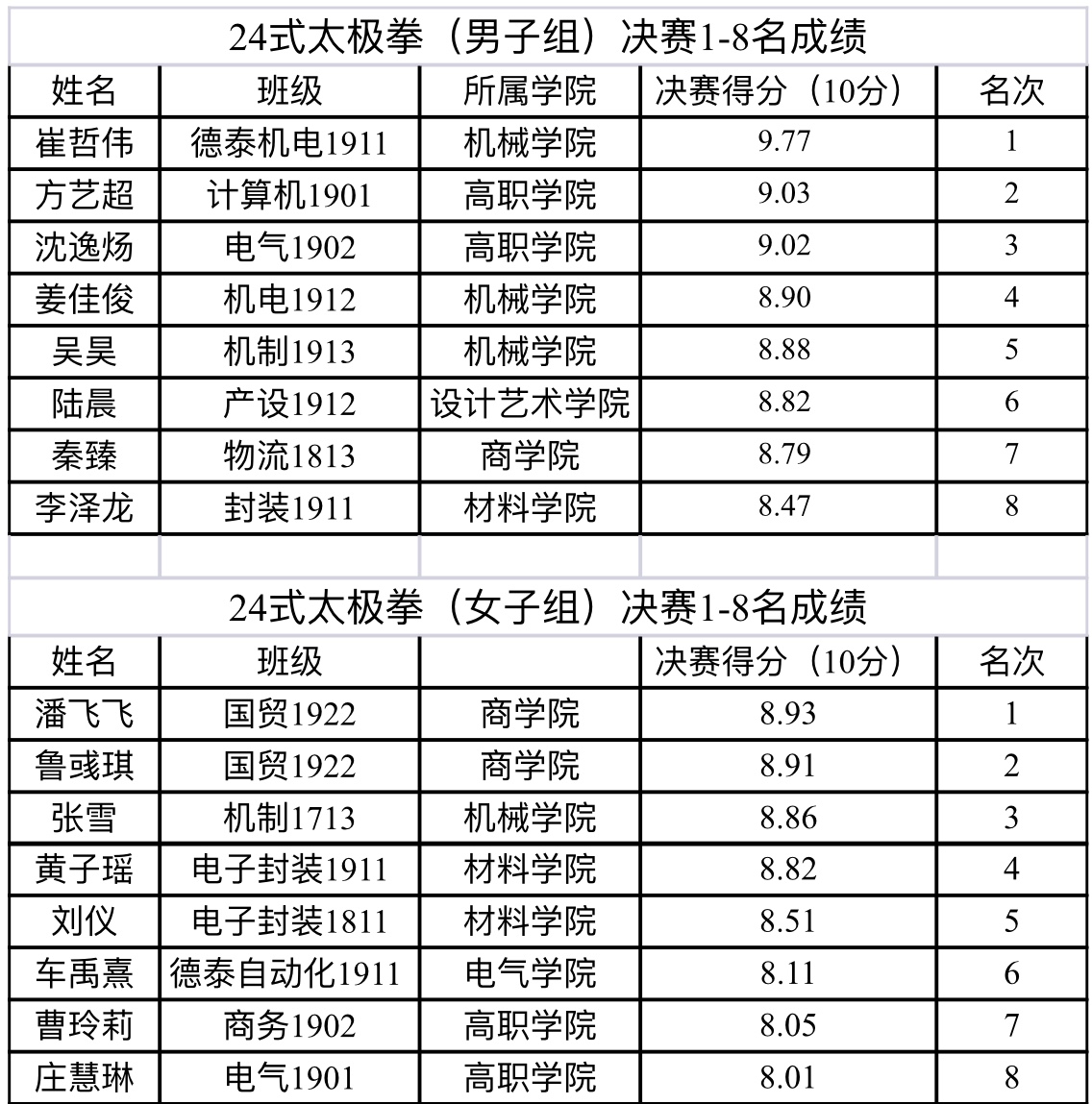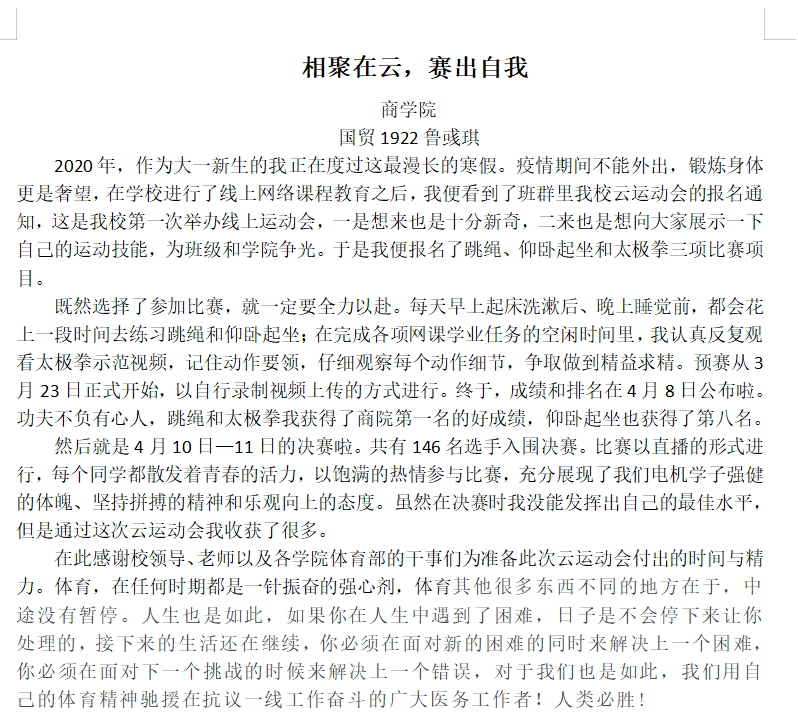 国贸1922鲁彧琪(校决赛女子跳绳第九名、校决赛女子太极拳第二名)