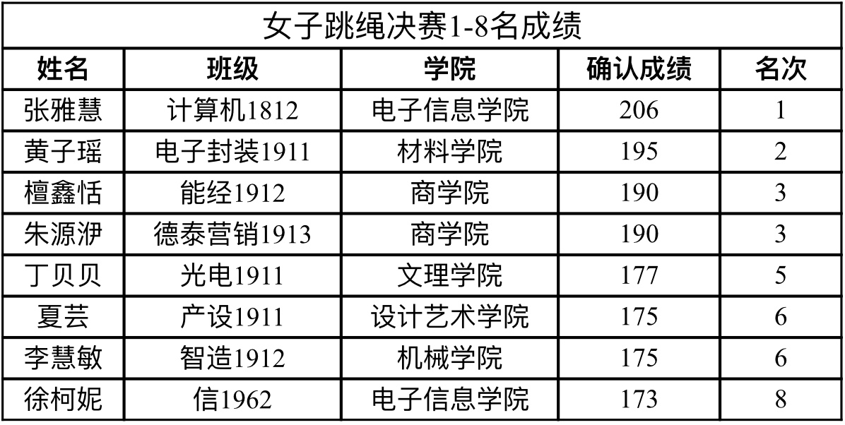 能经1912檀鑫恬(校决赛女子跳绳第三名)