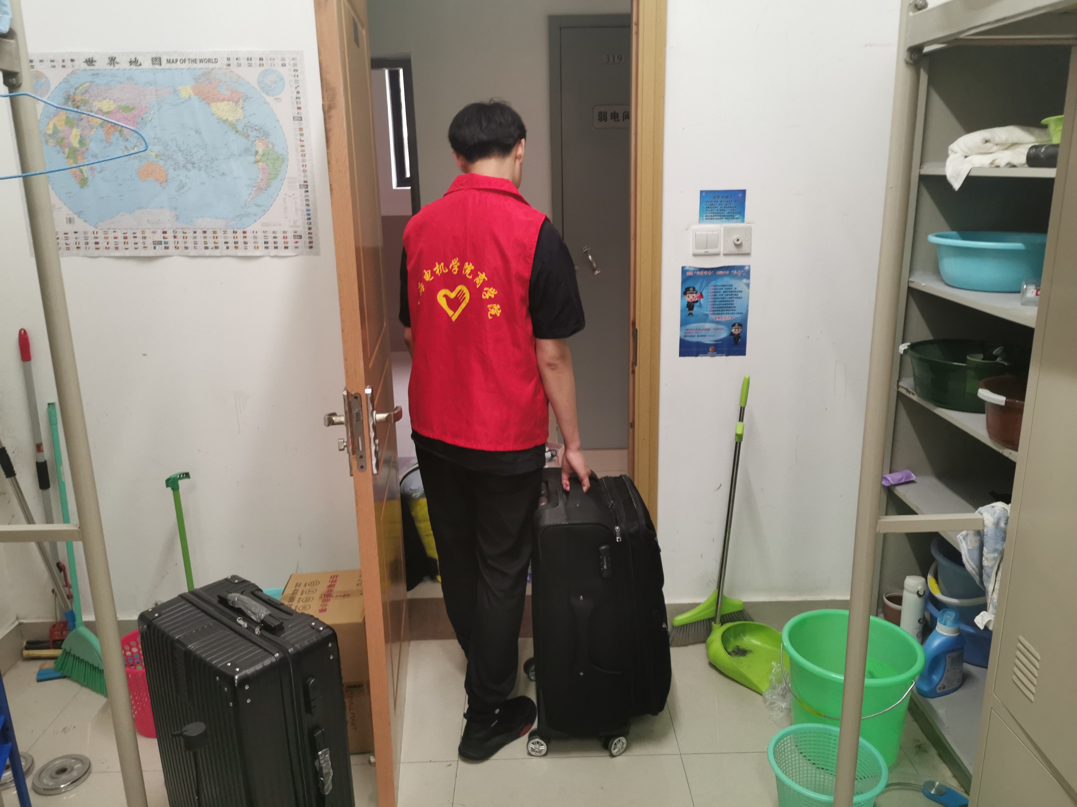 第一批返校助力的是欧冠投注官网入口第七党支部的徐凯和第八党支部的李哲婷,从6月1日开始,他们主要负责在寝室楼帮助返校学生搬运行李、以及帮助学院老师处理事务等工作。炎炎夏日下,他们不辞辛苦,挥洒汗水,穿梭于寝室楼和学院楼,站好毕业生党员最后一班岗。