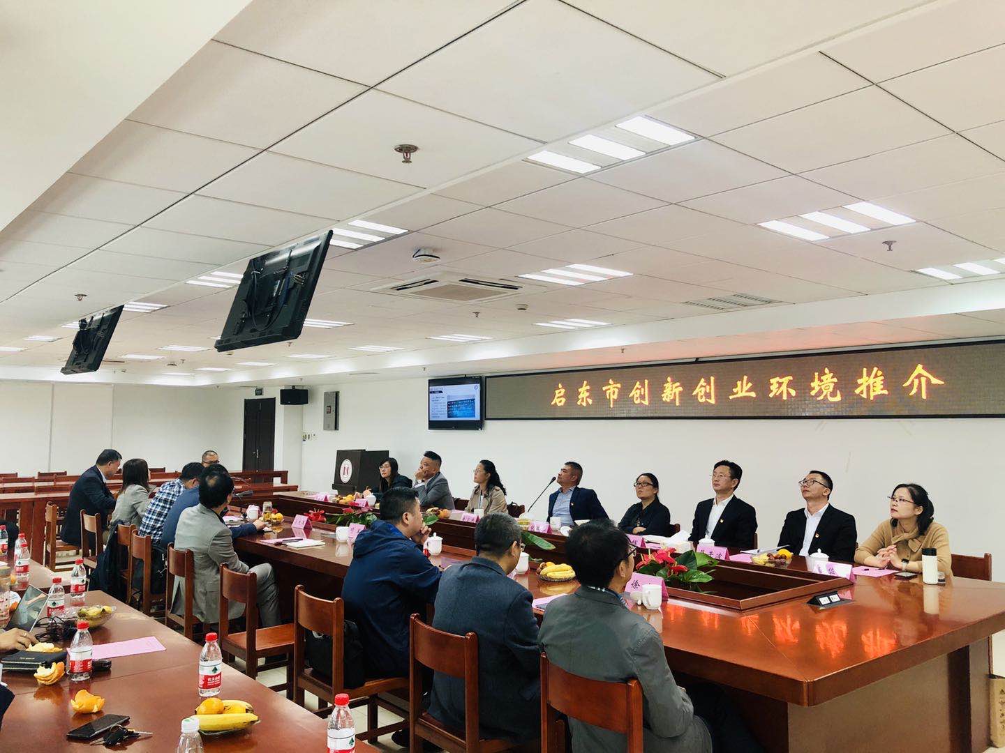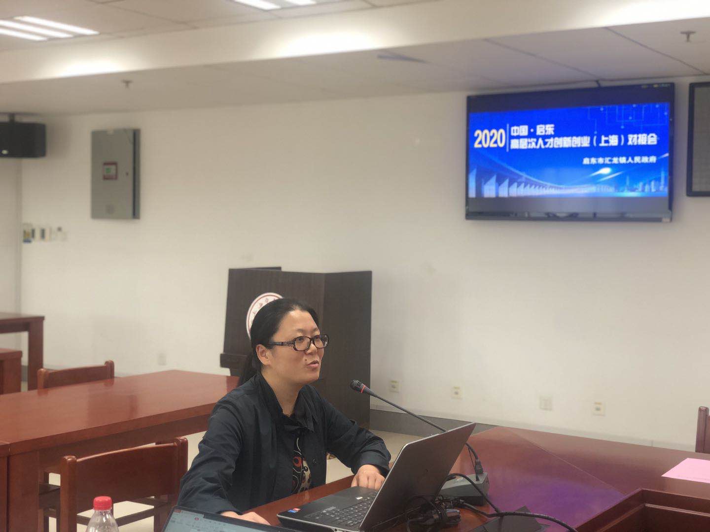 在随后的启东市创新创业环境推介会上,启东市汇龙镇人民政府副镇长张燕华首先带领大家解读了启东市关于创新创业和人才引进方面的相关扶持政策,随后从发展机遇、区位条件、城市名片、产业体系、人才环境五个方面对启东进行了详细介绍,希望以此为契机加强双方在学生实习和就业创业方面的合作,共谱交流合作新篇章,共创互利共赢新未来。