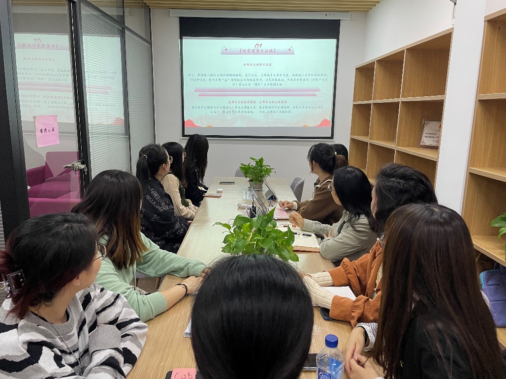 10月21日晚上,欧冠投注官网入口党委组织师生党员、发展对象和入党积极分子在学生党员园区工作站开展“重温长征故事,弘扬长征精神”主题活动。活动开始,师生们沿着时间的脉络,一起回首漫漫长征路,重温长征途中的感人故事。随后,大家一起学习了不屈不挠、艰苦奋斗、无私奉献的长征精神内涵。最后的交流发言环节,与会党员表示,通过本次学习活动,对长征的历史有了更深刻的认识,进一步领会了长征精神的深刻内涵,大家纷纷表示要在今后的学习工作中发扬长征精神,不断攻坚克难、勇往直前,走好新时代的长征路。