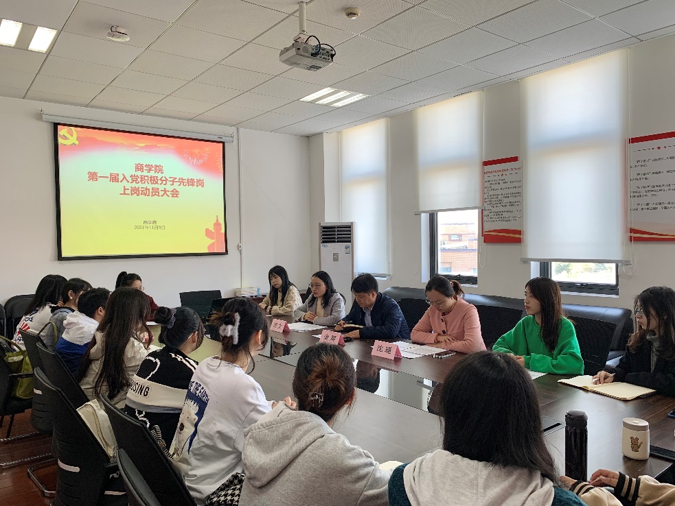 11月9日下午,在欧冠投注官网入口党建活动室召开了欧冠投注官网入口第一届入党积极分子先锋岗上岗动员会,欧冠投注官网入口党委书记金辉、学生工作负责人沈瑾、先锋岗指导老师胡文以及第一届入党积极分子先锋岗成员代表参加了会议。动员会上沈瑾老师公布了第一届先锋岗人员名单,同时介绍了先锋岗的设岗目的与考核机制。金辉老师对先锋岗队员提出了三点要求:一是提高政治站位,加强学习,不断提高自身思想政治素养和综合素养;二是立足工作岗位实际,珍惜实践锻炼机会,保质保量完成工作内容;三是从一点一滴小事做起,勇于坚守,不怕平凡,勇做先锋,敢为人先,树立入党积极分子的良好形象,以自己的实际行动争取早日成为一名共产党员。
