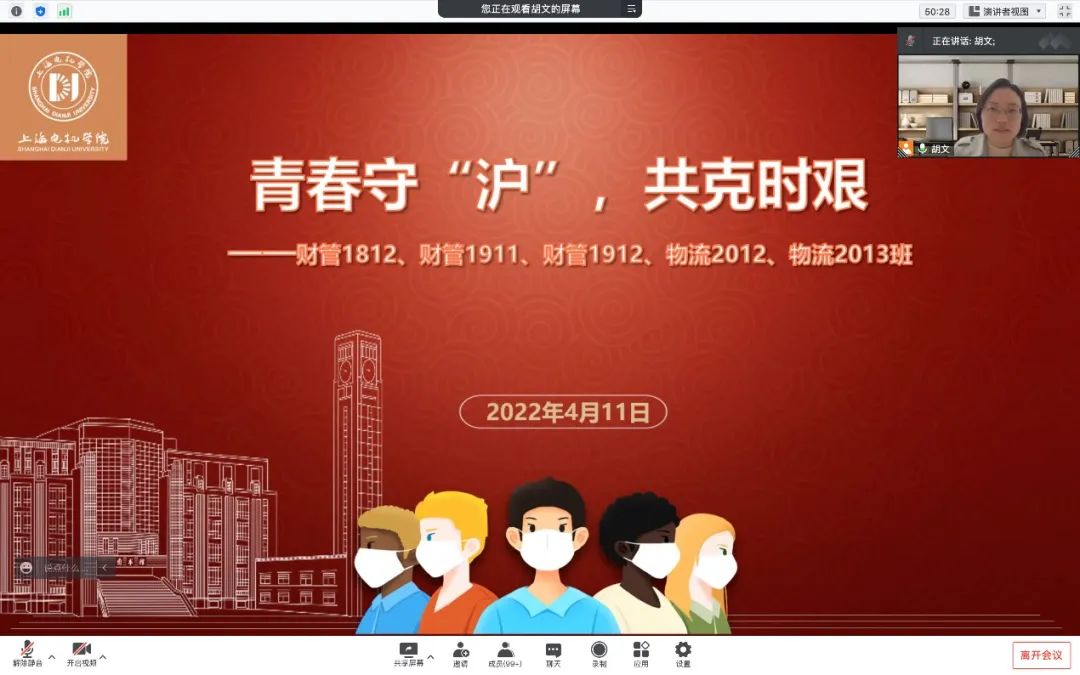 在疫情防控方面,辅导员班主任立足于学校工作重点和大学生特点,通过主题班会传达了目前上海市疫情防控形势,并再次强调学校防疫相关工作要求和纪律。在帮助学生进一步强化疫情防控意识的同时,具体提出了相应的要求,确保学生积极配合“网格化”“精准化”管理。此外,辅导员班主任认真宣传“大政策”,用心讲述“小故事”,以深入浅出的方式,帮助全体同学理解落实疫情防控措施的严肃性、巩固当前防控成果的重要性和终将全面战胜疫情的必然性。