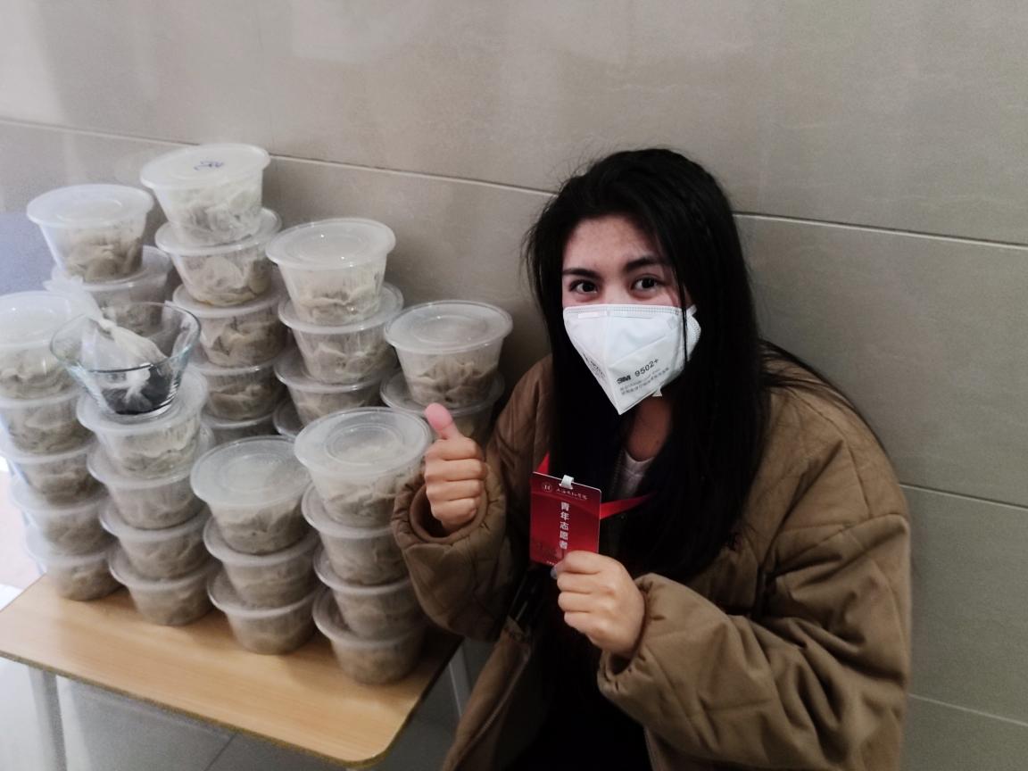 此次抗疫志愿者经历对她而言意义非凡,在志愿服务中她收获了很多感⼈瞬间,同学们一句句“谢谢,辛苦了!”仍在她耳边不断回荡。疫情⾯前,温暖在⼼与⼼之间传递。将近两个月,她作为楼层志愿者的一员,主要负责清点人数、为楼层同学们发放物资、提醒大家下楼做核酸、按规定时间为同学们发放抗原、时刻关注同学们的困惑和疑问等工作,这些志愿服务工作对安抚稳定同学们起到了重要作用。这段经历说长也长说短也短,每一次的任务背后都是负责老师和每一位志愿者的心血,也让她学到了很多。她说:“使我印象最深刻的是为同学们发放饺子的那次,大家都很开心,我也还特意拍照留念。”这段经历不仅锻炼了她的耐心韧劲,也增强了责任意识;在与楼层同学们的沟通交流的过程中,提升了为人民服务的宗旨意识。通过此次志愿者服务,使她更加热爱我们19宿,更加敬重那些以不同形式负重前行、默默奉献的校园工作者和每一位志愿者。与此同时,她也参加了食堂志愿者,主要负责清真食堂内的秩序,原本以为不会很困难,但也并非像她想象中那么简单,连续三个小时站岗,在两个时间段的高峰期,她始终以饱满的状态完成了此次的光荣任务。她说:“自己作为一名向党靠拢的积极分子,理应为疫情防控贡献出⾃⼰的微薄⼒量,因为微光虽有限,但终将汇聚成星河。尽管个人力量微薄,但当无数志愿者们奋战在“疫”线,以实际行动彰显“奉献、友爱、互助、进步”的志愿服务精神时,我懂得了“星星之火,可以燎原”的真正含义。”