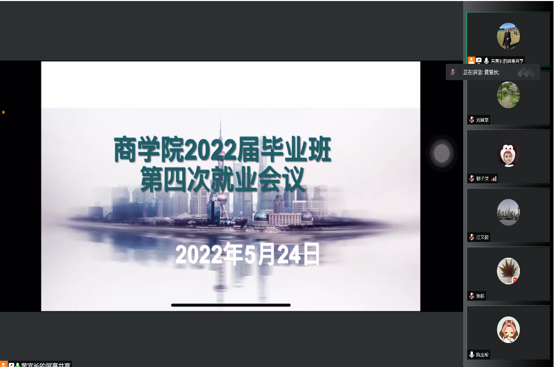 就业工作辅导员黄富长汇报了当前就业工作状况,并对下阶段“双周”目标与毕业生就业手续的办理流程做了说明。