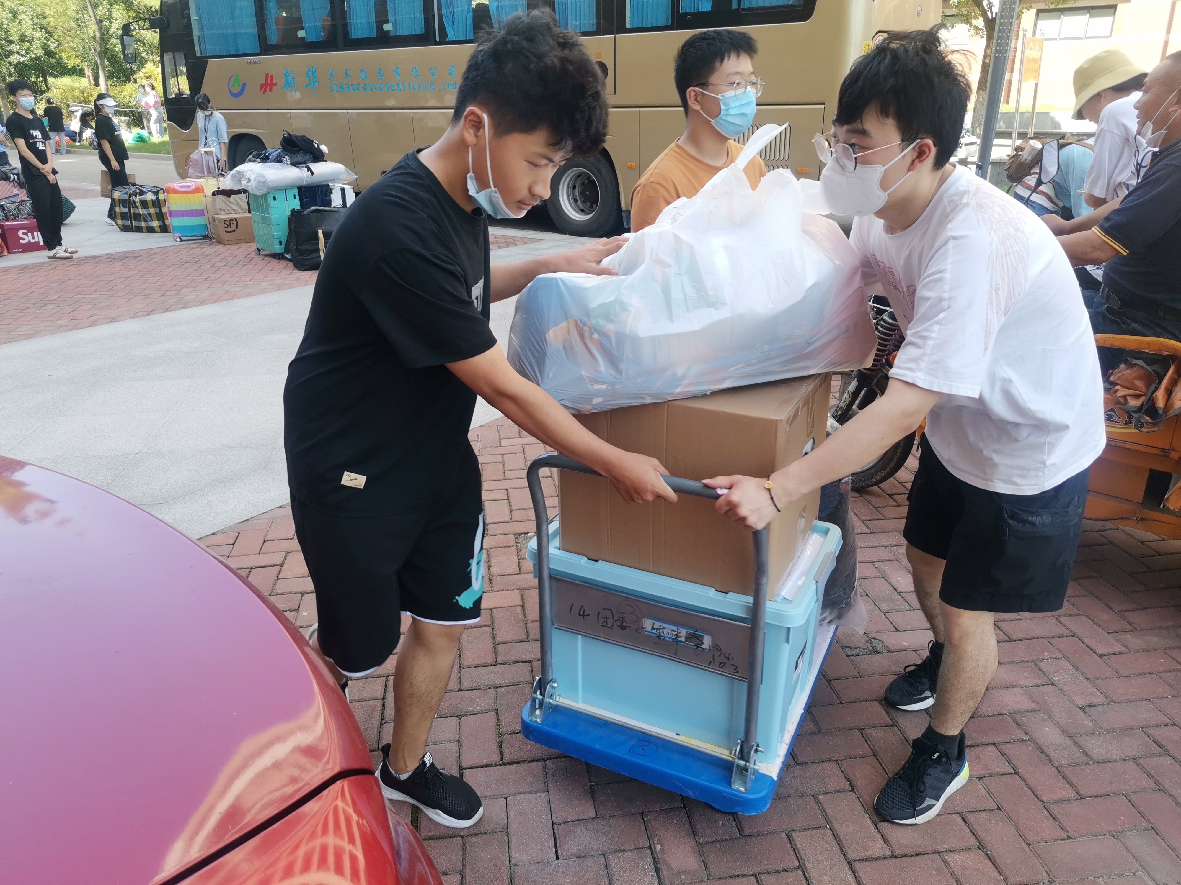 跨校区搬迁是该项工作的“重头戏”。在学校总务部学生工作部等相关职能部门的支持和帮助下,欧冠投注官网入口闵行校区工作办公室组织2021本科生以寝室班级为单位,依次抵达上车点,有组织、分批次搬运上车做到行李完整防控有效随着一排排搬运车辆的安全抵达,欧冠投注官网入口党委副书记沈瑾组织学生工作团队全员参与,协助调度搬运,不仅做到科学高效,更加温情暖心。临港校区的志愿者们主动上阵,搬起大包小包的行李,推着平板车一趟趟穿梭于楼宇之间。他们不仅充分发扬了互助、友爱、奉献、进步的志愿精神,更展现了商院学子的良好精神风貌。