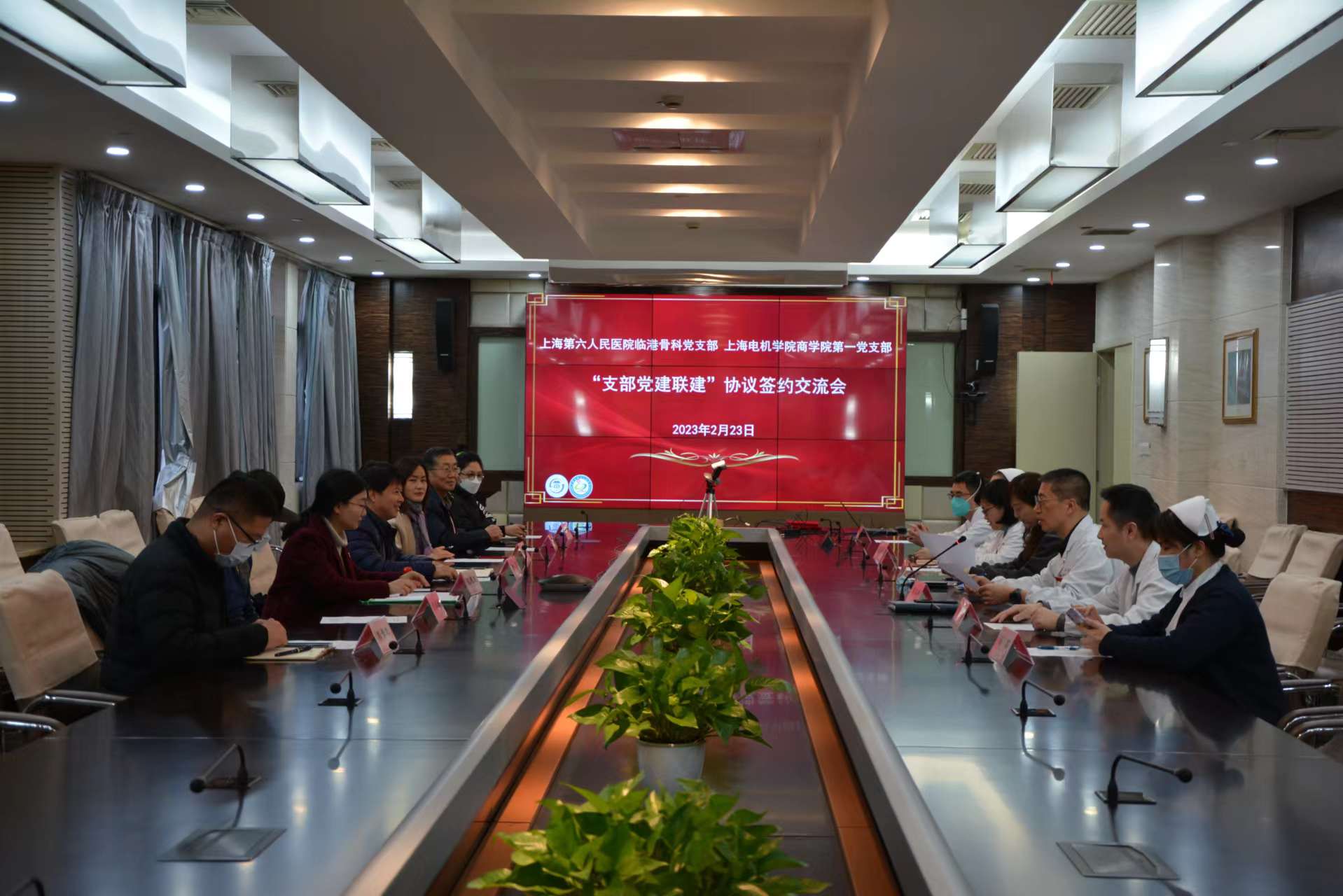 2023年2月24日,学院党委书记金辉、专职组织员孙慧、第一党支部书记范思遐、工程管理系主任张晓红、学生工作办公室主任刘景龙等赴上海第六人民医院临港院区,第六人民医院组织处处长秦玮、副处长程雪、骨科党支部书记詹玉林、骨科党支部副书记文根等参加座谈交流和签约仪式。双方围绕支部协同发展、资源共享互利等议题深入交流,并就党建共建达成协议,希望以支部共建为起点,以点带面促进双方各项改革事业发展。