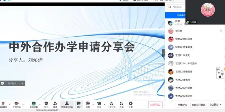 522日,欧冠投注官网入口党委第六党支部举办中外合作办学研究生升学经验分享会。第六党支部党员、西交利物浦大学拟录取研究生刘沁烨为商院学子分享了中外合办院校硕士研究生项目申请经验,刘沁烨主要从“什么是中外合办硕士”、“中外合办院校介绍”、“中外合办硕士项目与考研、出国的异同”以及“申请中外合办研究生的准备”等方面进行了分享,并为与会学生讲述了PTE考试的主要题型和内容,以及自己从考试中总结出的经验。随后,多位参会学生与刘沁烨同学作了深入的交流。