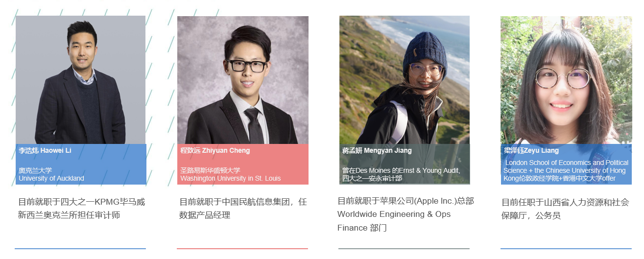 本项目毕业生面向跨国公司及国际金融服务机构及其他经济组织,亦在国家相关事业单位及科研部门从事国际商务分析研究工作。完成“2+2”项目学习的同学95%以上被国际知名高校研究生项目录取,继续深造。近年来已有多位同学在北爱荷华大学毕业后,成功申请到美国哥伦比亚大学和约翰霍普金斯大学继续攻读硕士学位;毕业后就职于PWC普华永道公司等世界五百强企业。为人生职业发展开启了全新的序幕。
