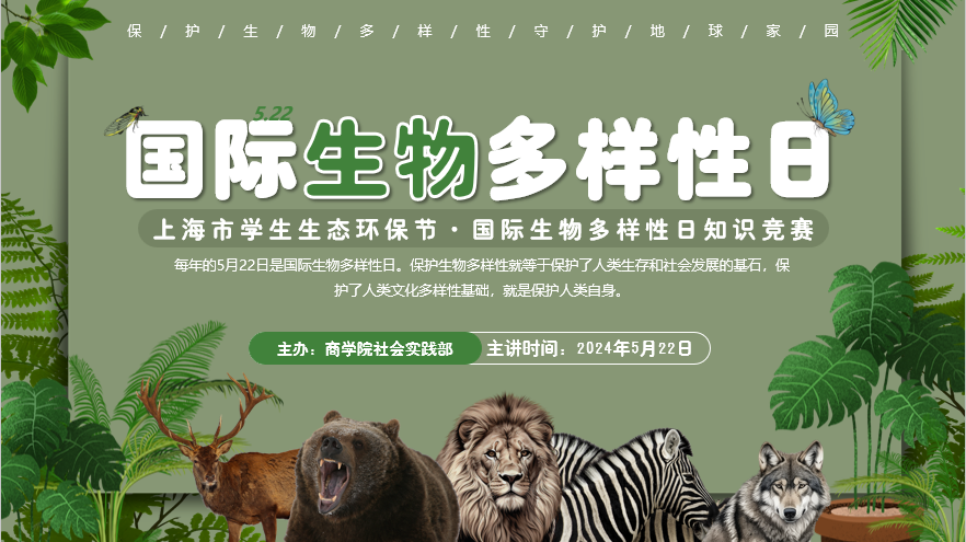 今年的国际生物多样性日联合国公布的国际主题是“Be part of the Plan”,即“生物多样性·你我共参与”,希望社会各界共同推动《昆明-蒙特利尔全球生物多样性框架》的实施。为积极响应市教委第六届上海市学生生态环保节的号召,丰富欧冠投注官网入口学生的课余生活,同时帮助同学们准确了解国际生物多样性,积极致力于保护野生动物以及濒危物种,近日,欧冠投注官网入口社会实践部在临港校区学生公寓19号楼德雅书苑成功举办了主题为“生物多样性·你我共参与”的国际生物多样性日知识竞赛系列活动。