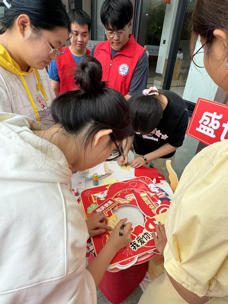 “心声墙·韵写祝福”是本次活动的一大亮点。在这个环节中,参与者们纷纷将自己的祝福和心声写在彩色的纸上,然后贴在心声墙上。这些字迹中充满了对祖国的热爱和对未来的美好期待,构成了一面独特的“心声墙”。这些字字句句都饱含着深深的情感和真挚的祝福,为这个特殊的日子增添了更多的色彩和温暖。