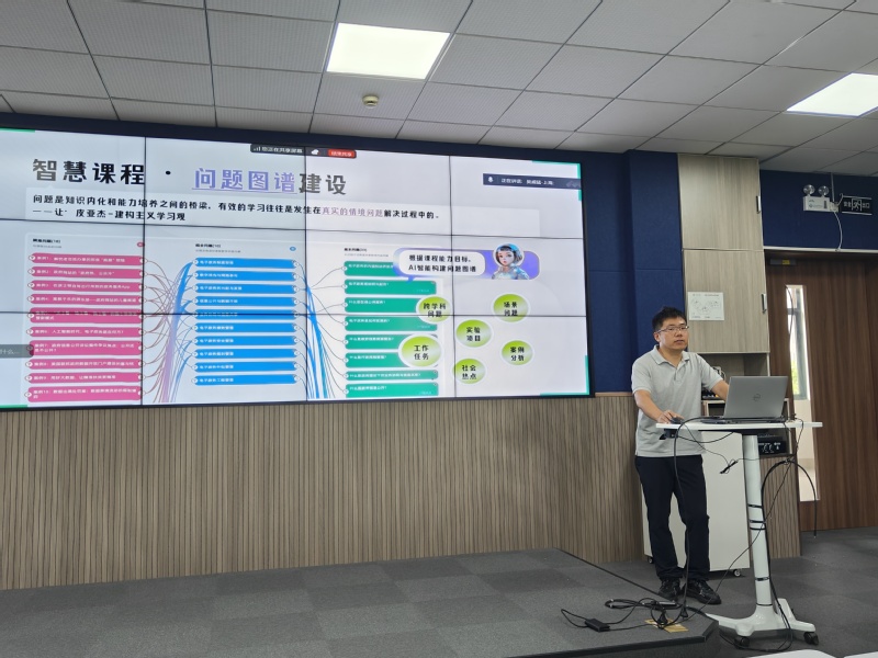 本次培训以“AI赋能教育教学暨数智化课程建设”为主题,旨在帮助教师掌握人工智能技术在教学中的应用,推动课程数字化转型与创新。吴威猛老师结合前沿案例,详细讲解了AI工具在教学设计、课堂互动、学习评估等环节的实践策略,并现场演示了数智化课程建设的操作流程。线上、线下的与会教师积极参与互动,就AI技术如何优化教学效果、提升学生学习体验等问题展开了深入探讨。
