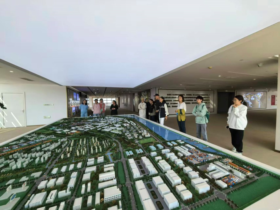随后,在朱老师的带领下,师生们参观了洋山特殊综合保税区规划展示中心。通过沙盘模型、多媒体展板和丰富的图文资料,朱春蕾老师重点讲解了保税区的总部区域规划、实体功能布局以及未来的产业发展方向。师生们就关心的物流动线设计、海关监管模式、新兴产业布局等问题与朱老师进行了热烈的现场交流,气氛活跃。