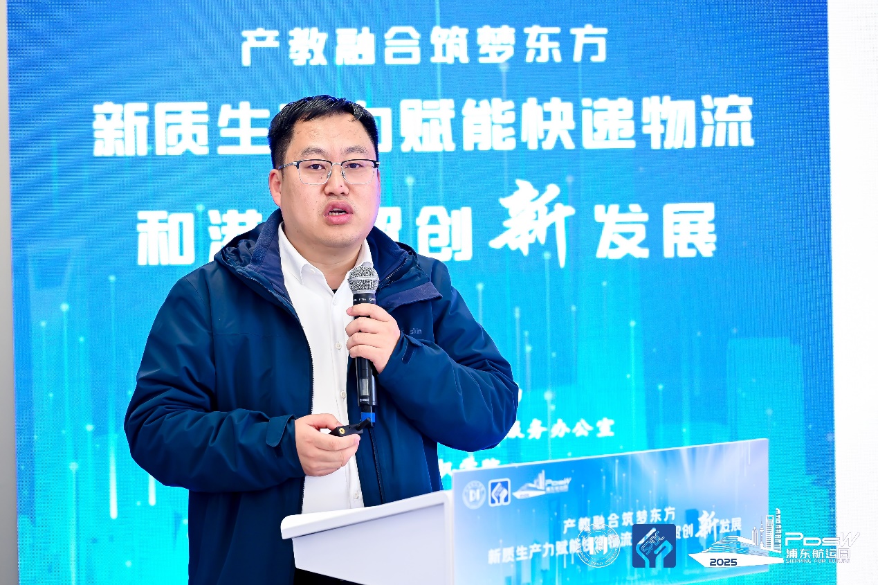 为深化产教融合育人成效,助力硕士研究生把握行业前沿动态、提升专业实践认知。2025年12月4日,欧冠官方网站组织各专业硕士研究生代表,赴上海世博天地参加“产教融合筑梦东方 新质生产力赋能快递物流和港航贸创新发展”研讨会。本次研讨会作为2025浦东航运周核心系列活动,由浦东邮政管理局、浦东新区航运服务办公室指导,欧冠官网联合上海浦东职业技术学院联合主办,汇聚政府主管部门、行业龙头企业、高校院所专家学者共话产业发展与人才培养。